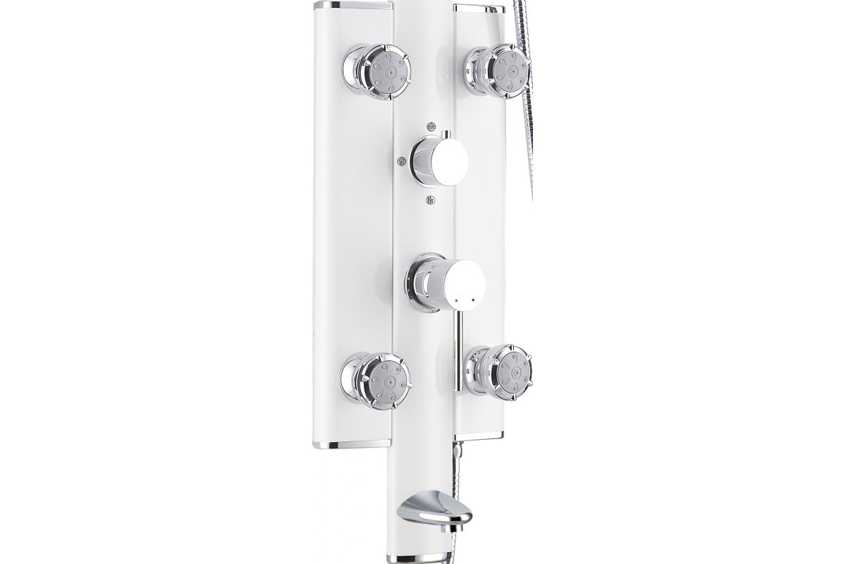 Тропический душ, ручной душ, зеркало, полочка. 4 мм, задняя стенка -белая, дверцы -..