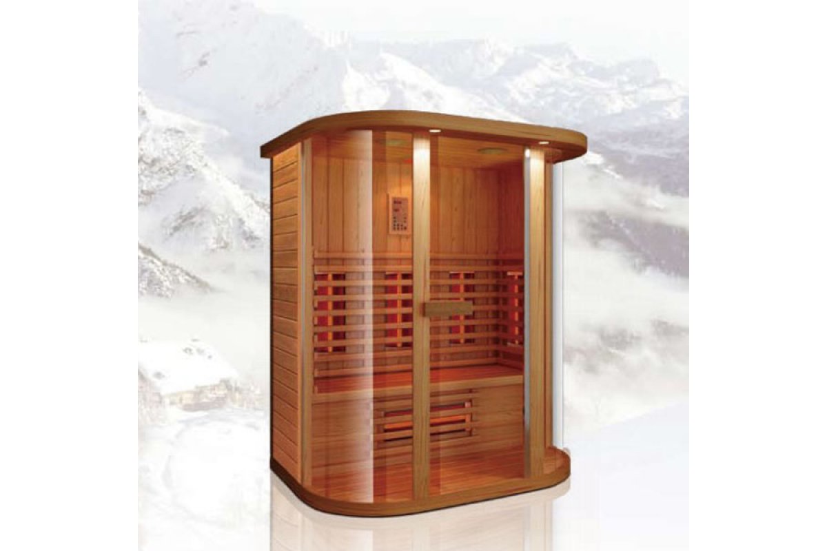 Инфракрасная комнатная сауна в классическом стиле с красивым рисунком дерева.Стеклокерамические нагреватели.