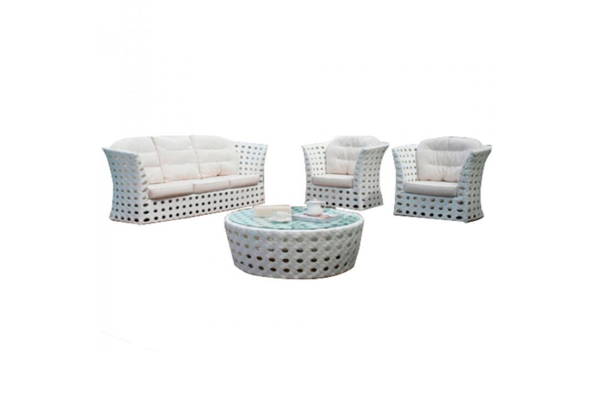 Комплектация: двухместный диван, два кресла, стол