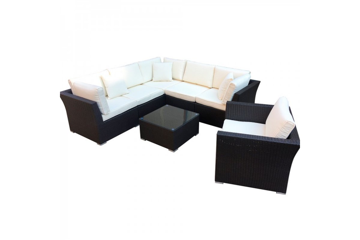 Комплектация: левый и правый диван, угловой диван, одноместный диван без подлокотника две штуки, стол, кресло