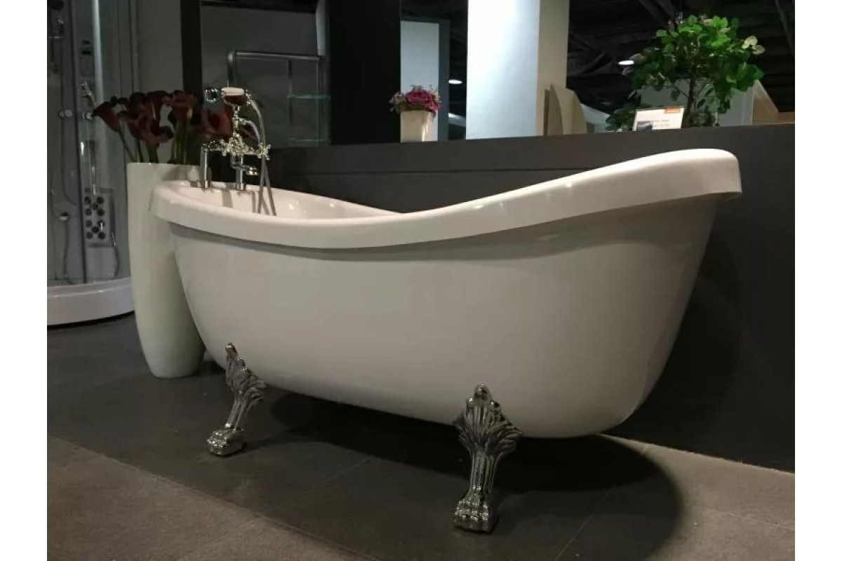 Ванна акриловая, овальная, отдельностоящая, на львиных хромированных лапах, слив-перелив, цвет акрила: cлоновая кость, cо смесителем