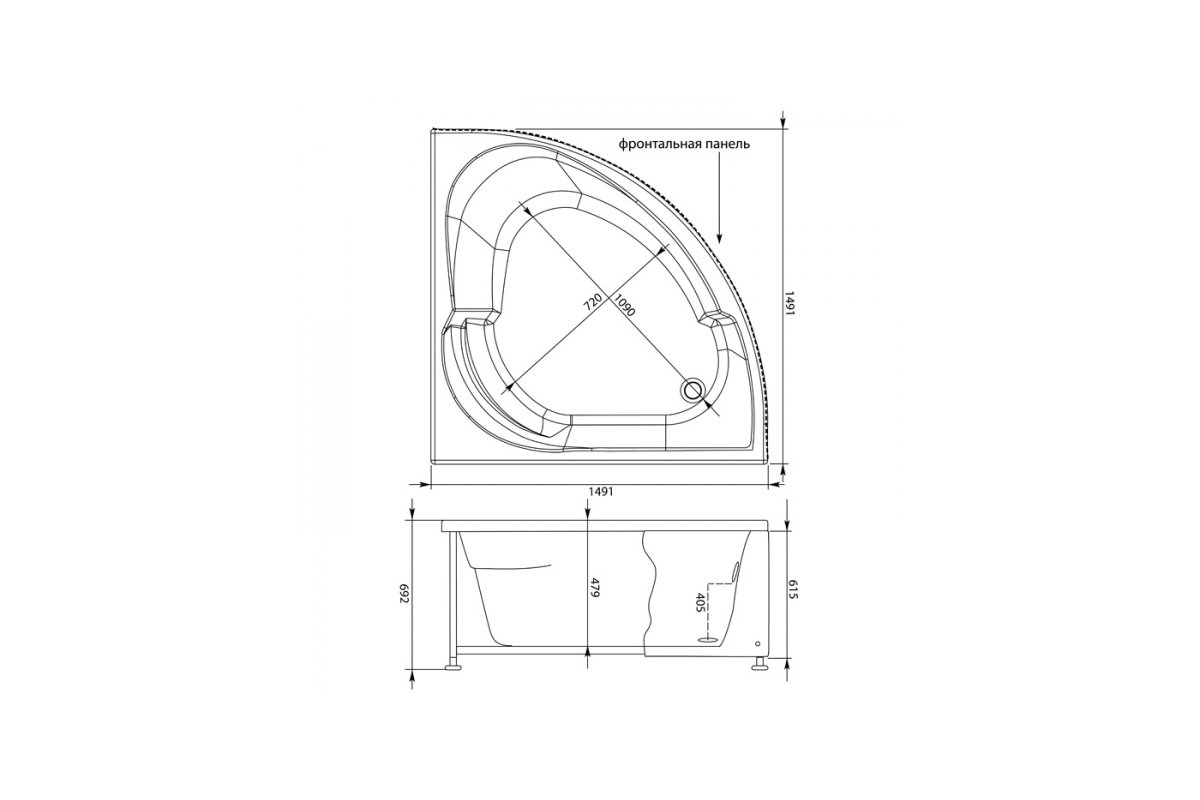 Угловая акриловая ванна Bali. Плавные линии ванной напоминают лист растения, а сама чаша – словно уютная раковина.