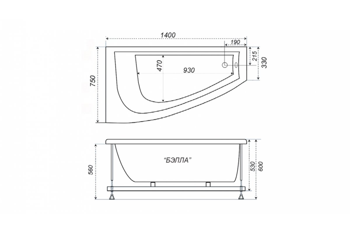 Акриловая ванна Triton асимметричная БЭЛЛА L/R
