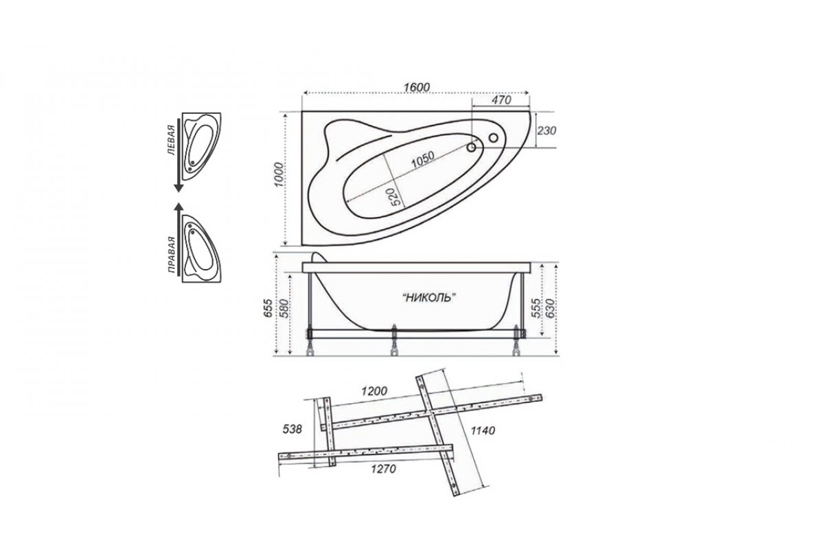 Акриловая ванна Triton асимметричная НИКОЛЬ L/R new