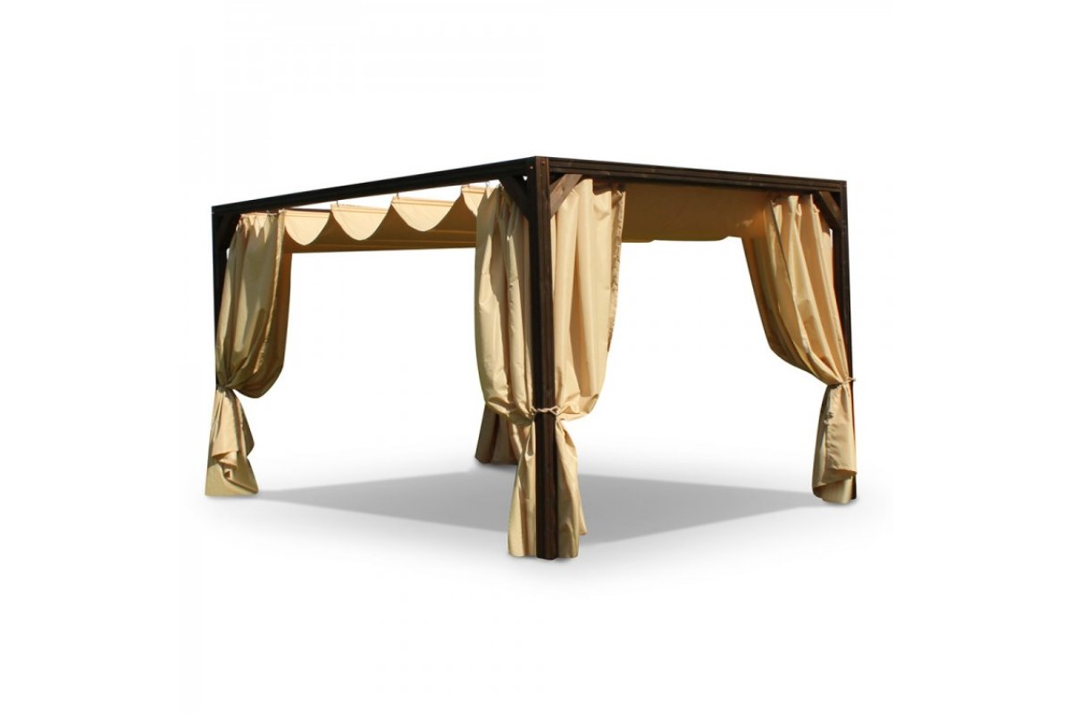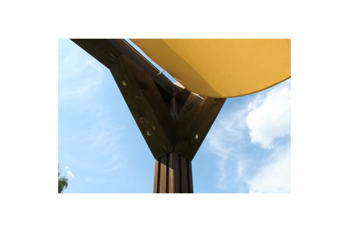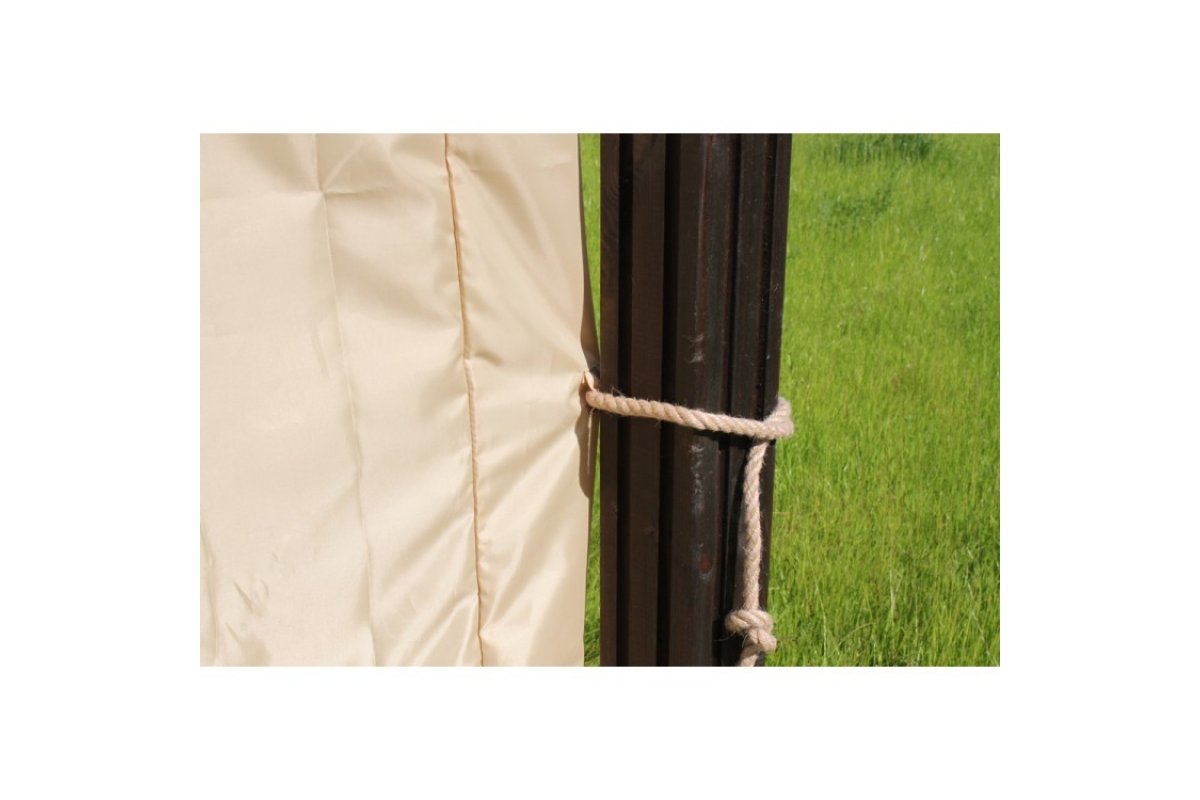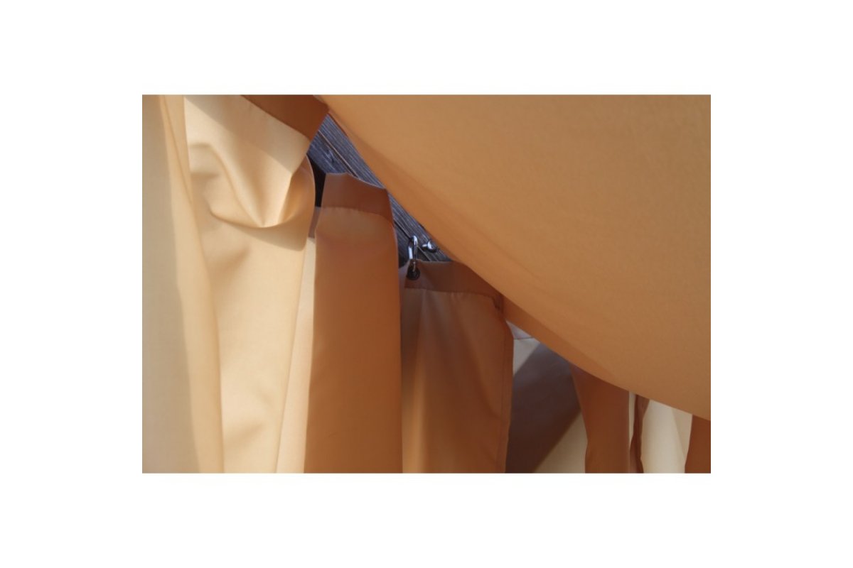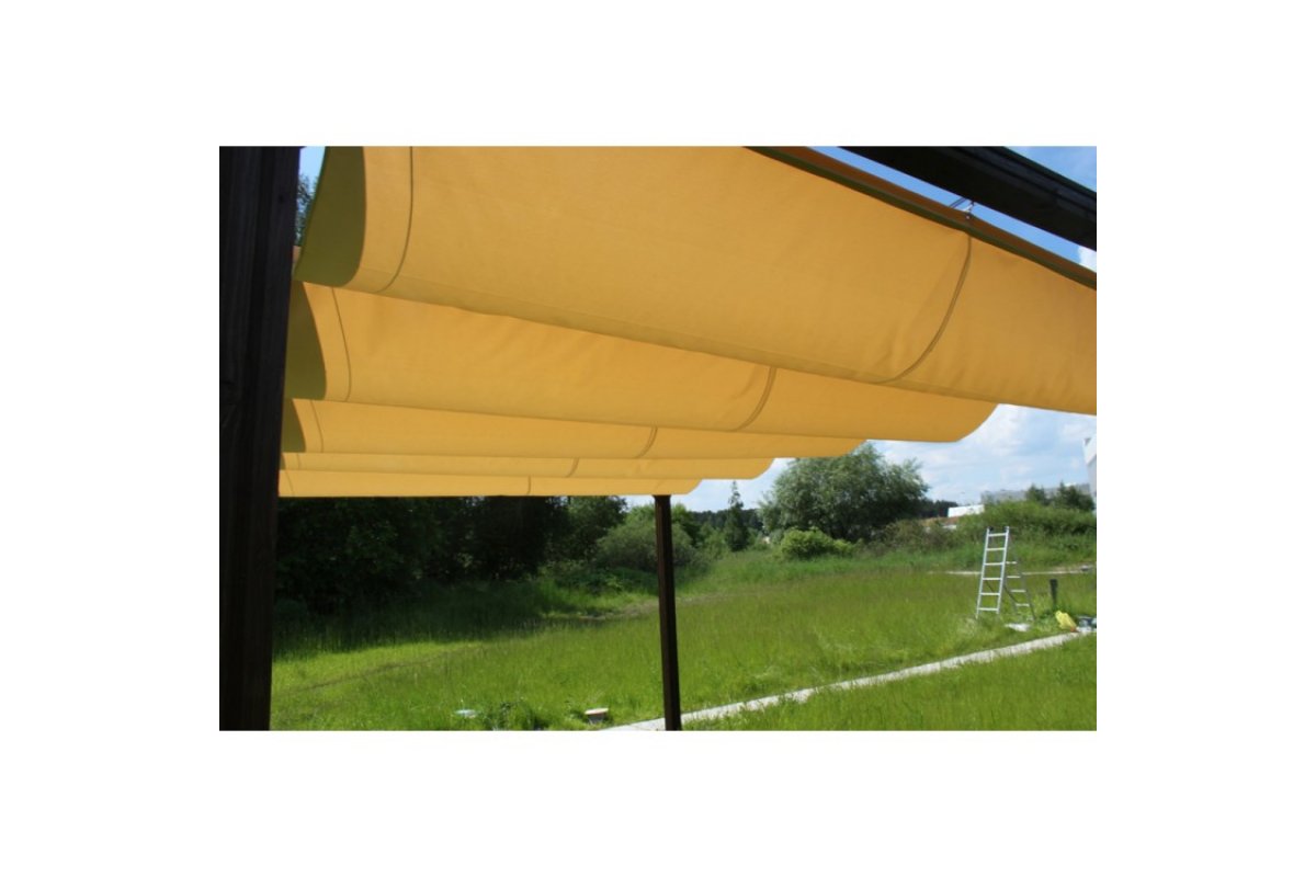 Крыша беседки: крыша-тент из материала Оксфорд 600 с водоотталкивающей пропиткой (3000). Крыша раздвижная, регулируется тросом и фиксируется яхеным кнехтом из нержавеющей стали.
