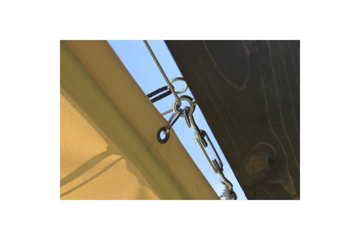 Фурнитура: вся основная фурнитура (тросы, карабины, болты и т.д.) выполненные из нержавейки, такая же фурнитура используется при производстве яхт. Фурнитура способна выдержать не только дождь и снег, но и агрессивное воздействие соленой воды