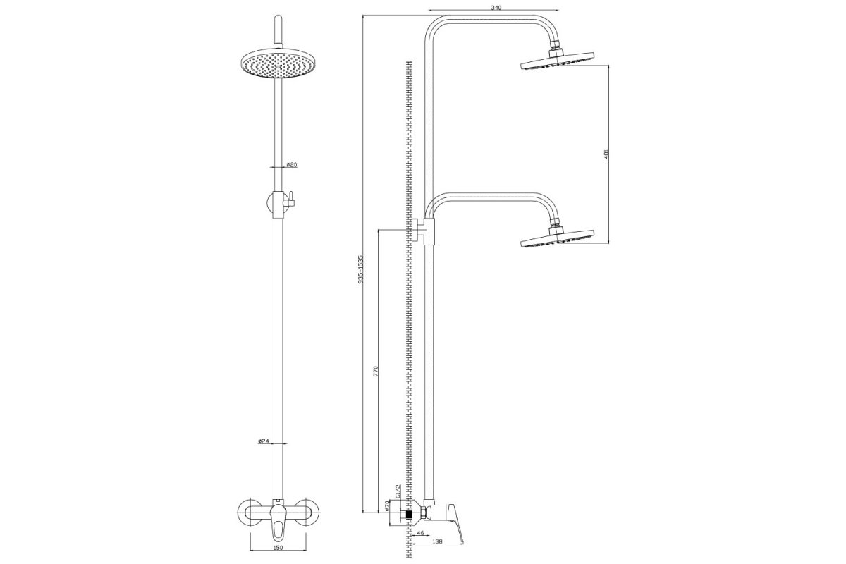 Смеситель для душа с регулируемой высотой штанги и верхней душевой лейкой "Тропический дождь" B35-44, хром