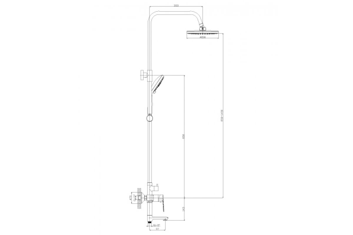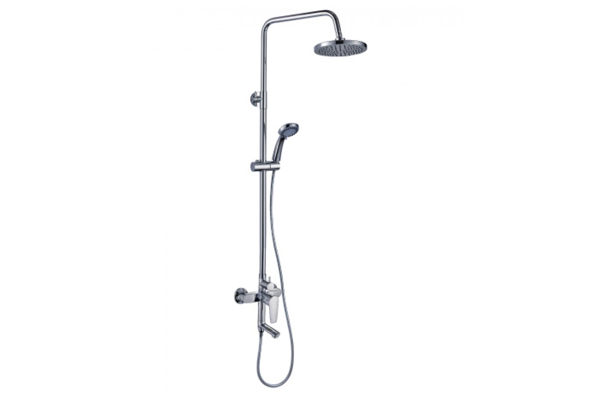 Смеситель для ванны и душа с регулируемой высотой штанги, поворотным изливом 97 мм и верхней душевой лейкой «Тропический дождь» S35-46, хром