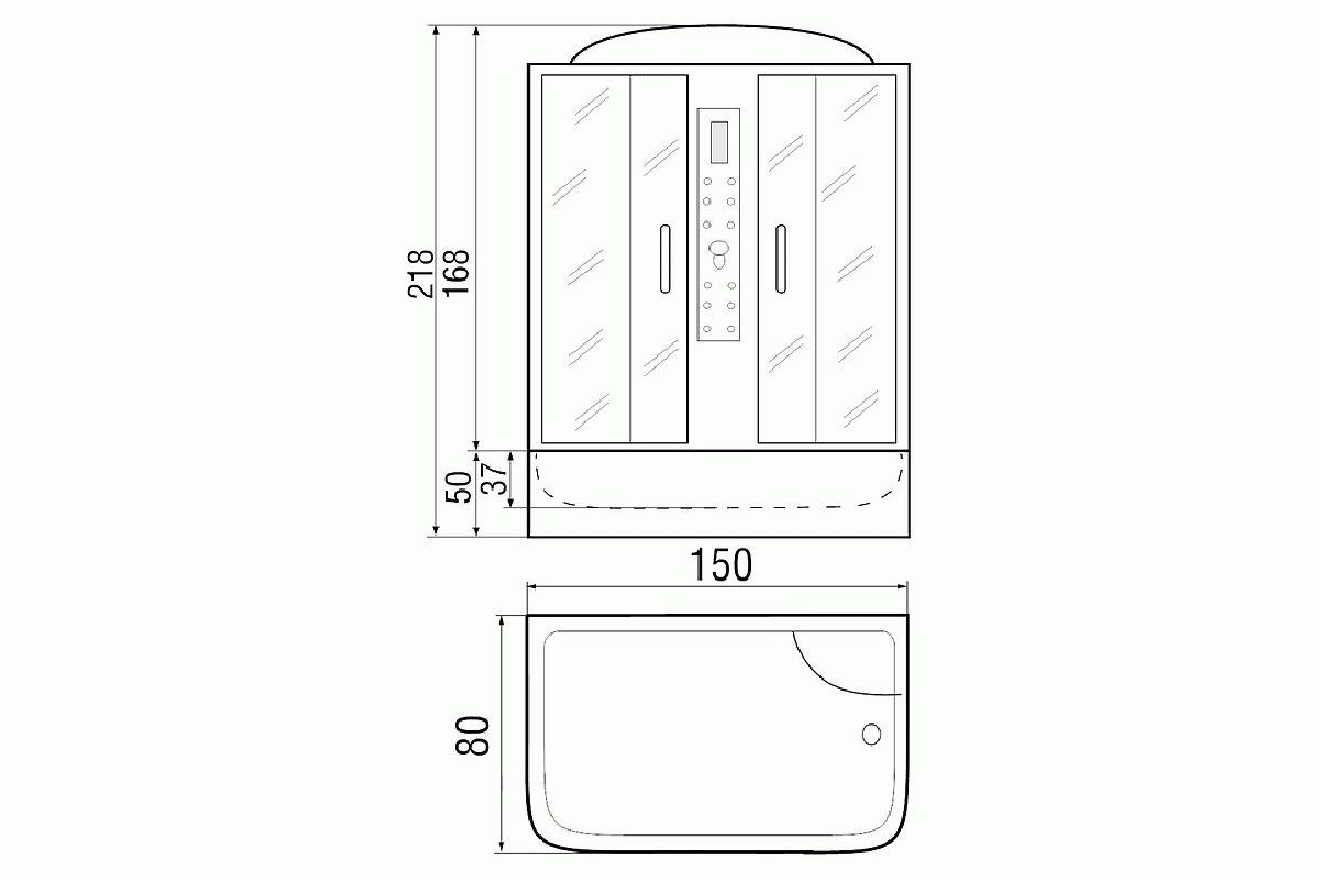 Крыша, верхний душ, верхний свет, динамик, вентилятор, пульт управления, радио, телефон, 3 г/м форс., штанга, 3х режимный ручной душ, сместитель с переключением режимов, зеркало, полочка, вешалка