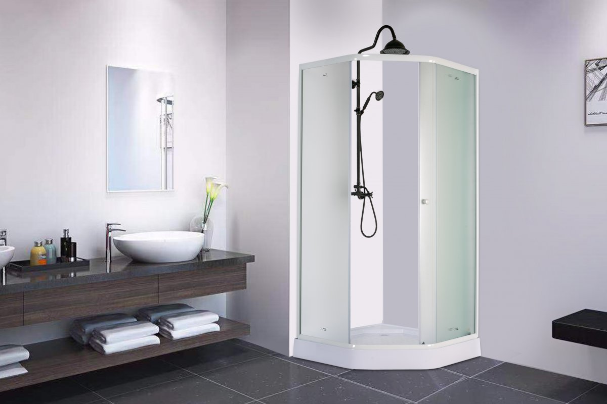 Безсиликоновая сборка!Без крыши, центральная стойка, ручной душ 3-х позиционный, держатель д..