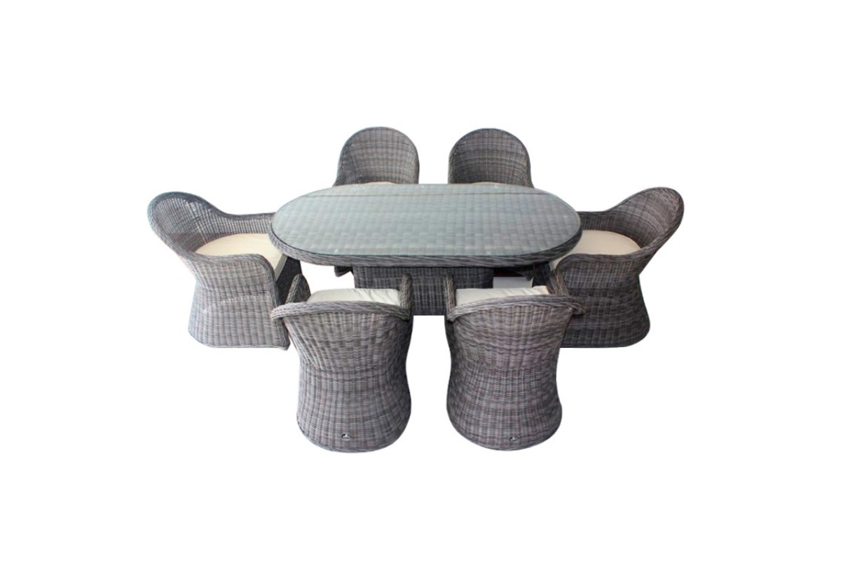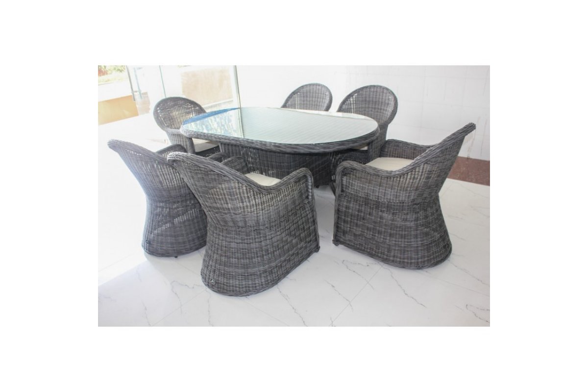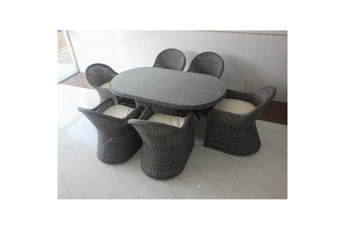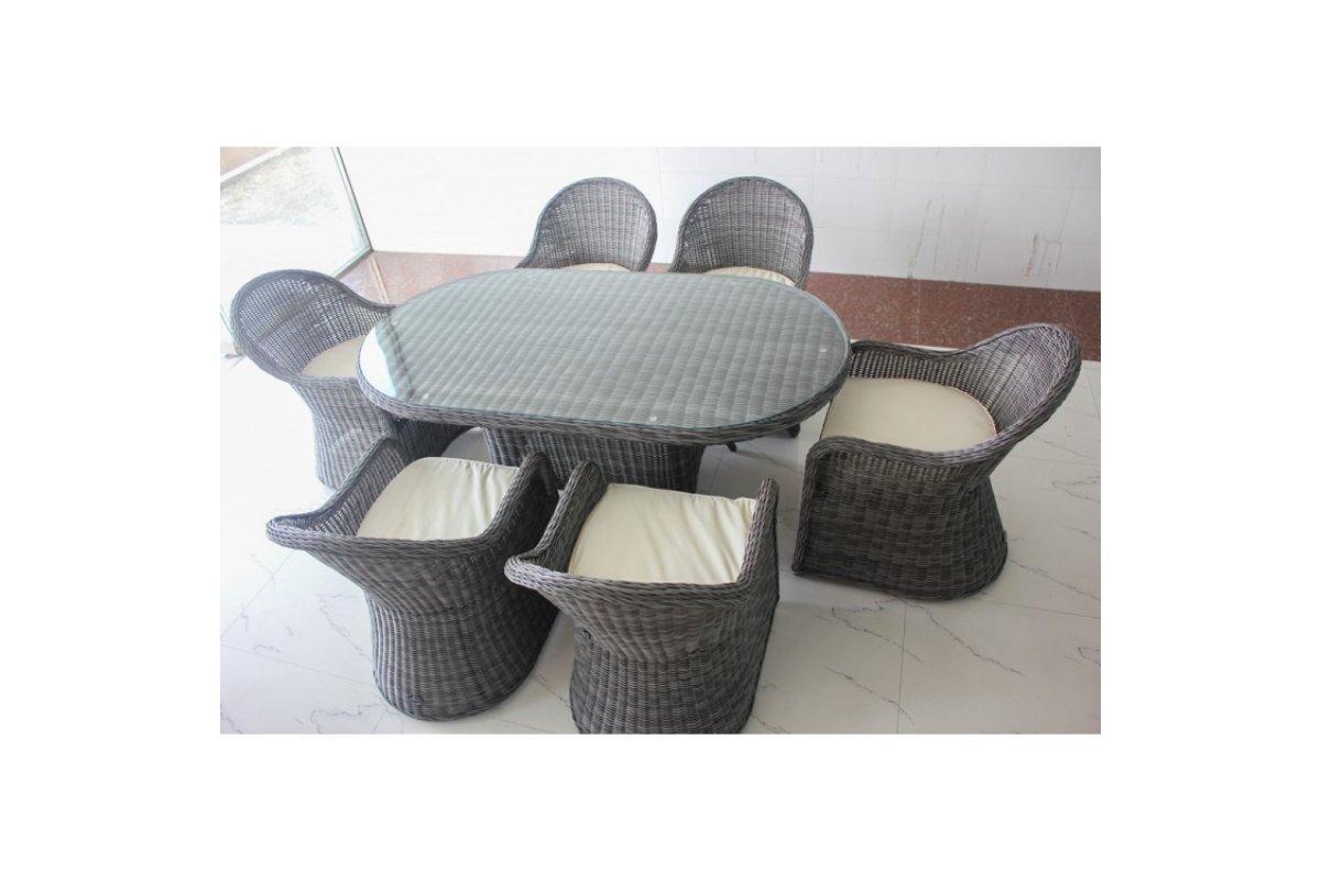 Комплектация: 1 стол со стеклянной столешницей, шесть стульев
