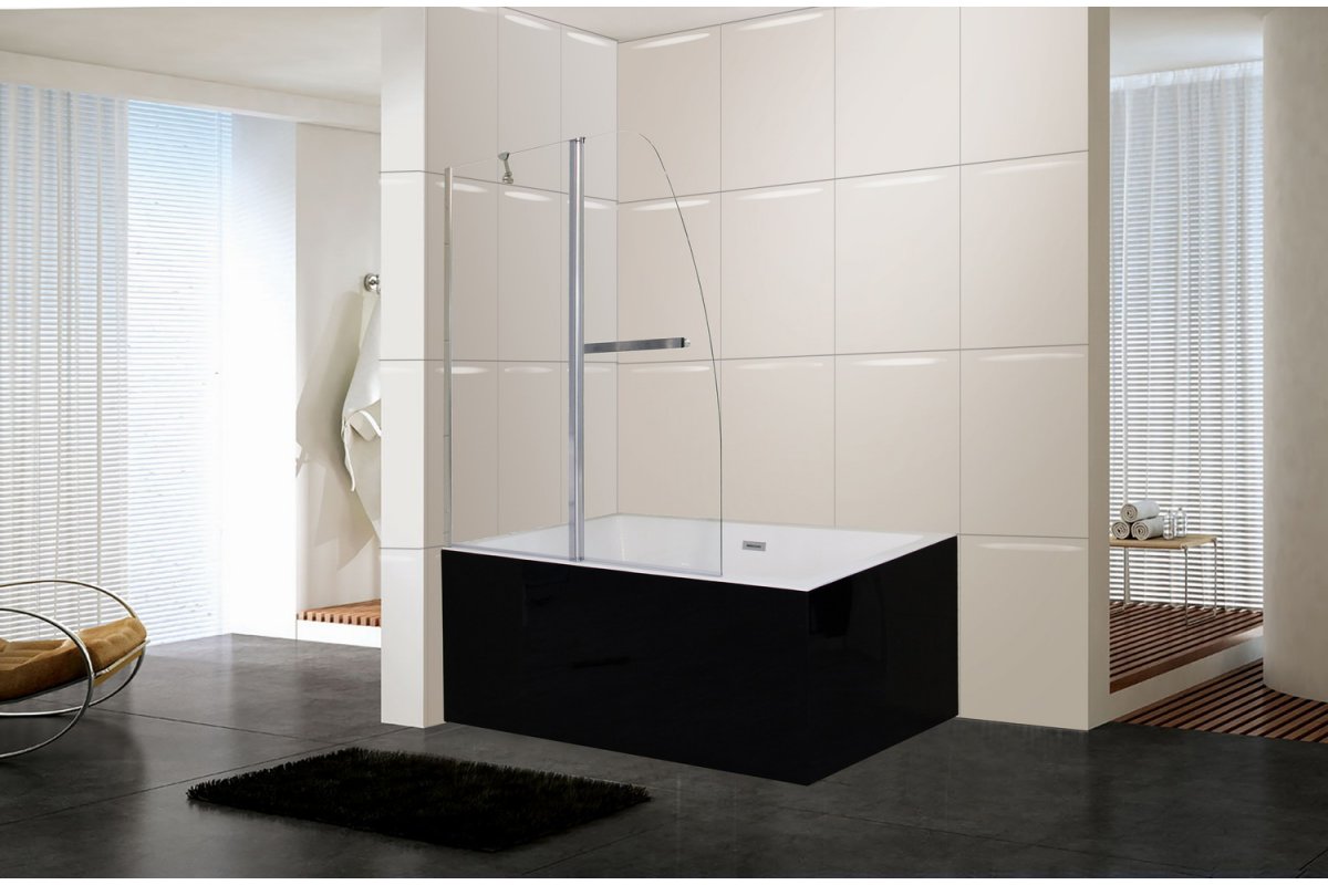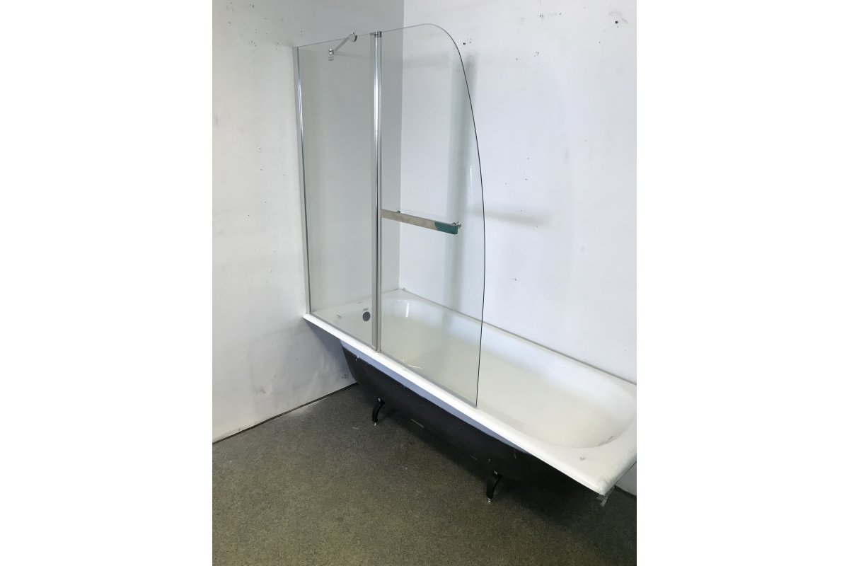 Шторка на ванную, 5 мм прозрачное закаленное стекло, одна часть неподвижная, вторая поворотная с держателем для полотенца , полированный хромированный профиль. НОВИНКА!!!