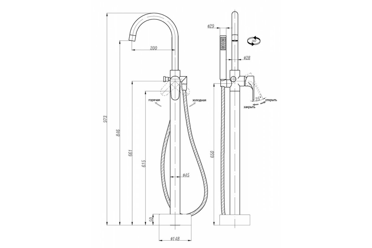 Смеситель ABBER Weiss Insel AF8016 напольный, хром