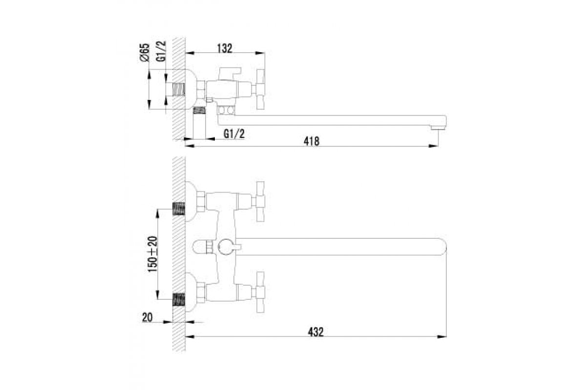Смеситель LEMARK в/д "NEO", 2х вент., плоский излив, 350мм, хром