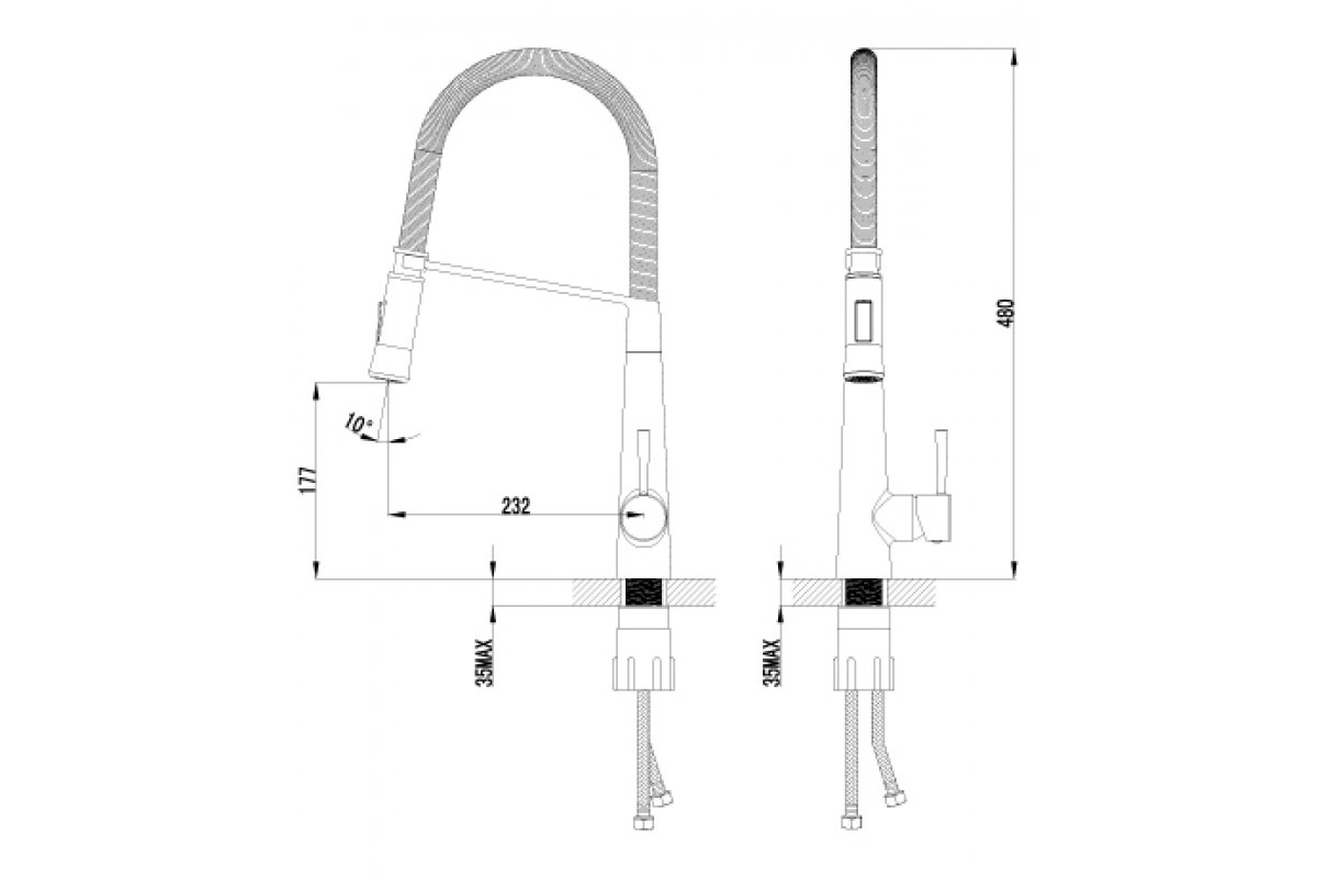 2-х функциональная излив-лейка с аэратором и гибким шлангом 1,8м.