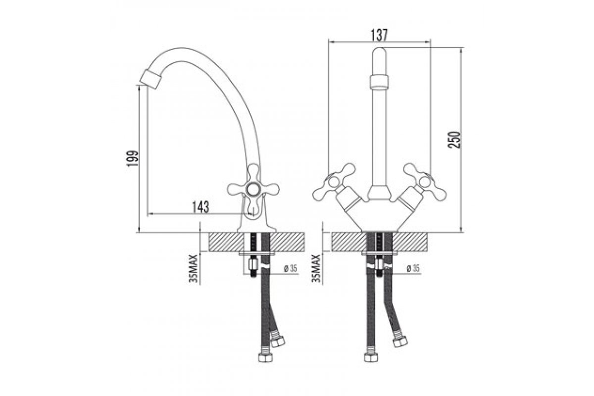 Смеситель LEMARK для кух.мойки "STANDARD", 2-х вент., поворот излив 250 мм, хром