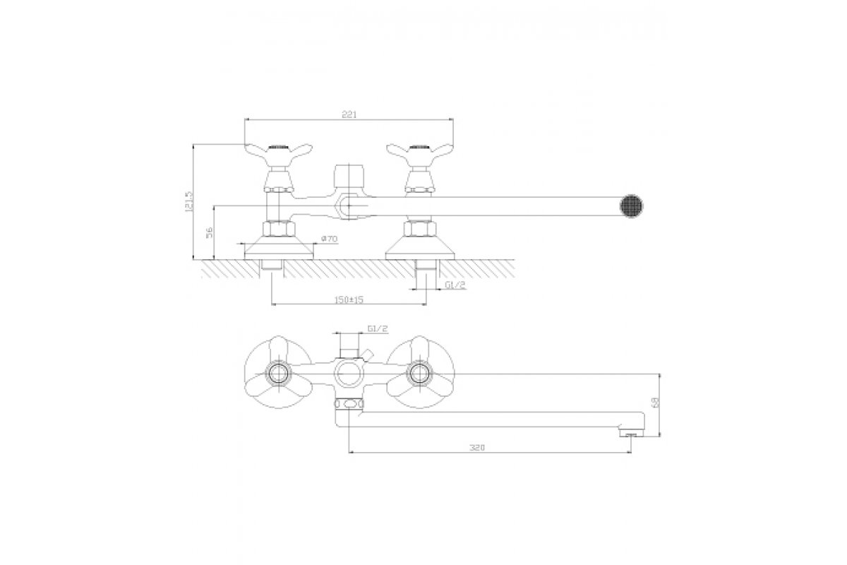 Смеситель для ванны с плоским поворотным изливом 350 мм Q02-80, хром
