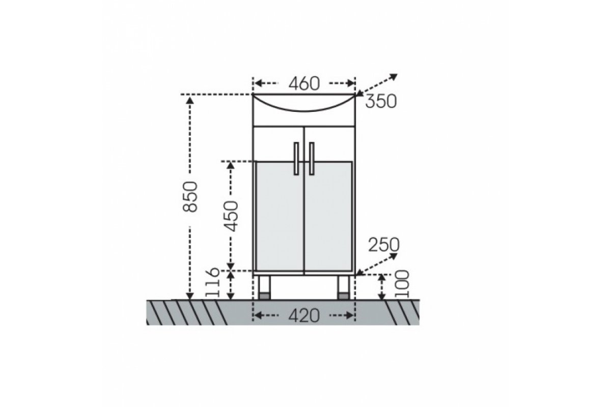 Комплектация товара: Ручка - 2 шт, регулируемая ножка - 4 шт, механизм доводчика (плавное закрывание дверей), раковина Уют 45.