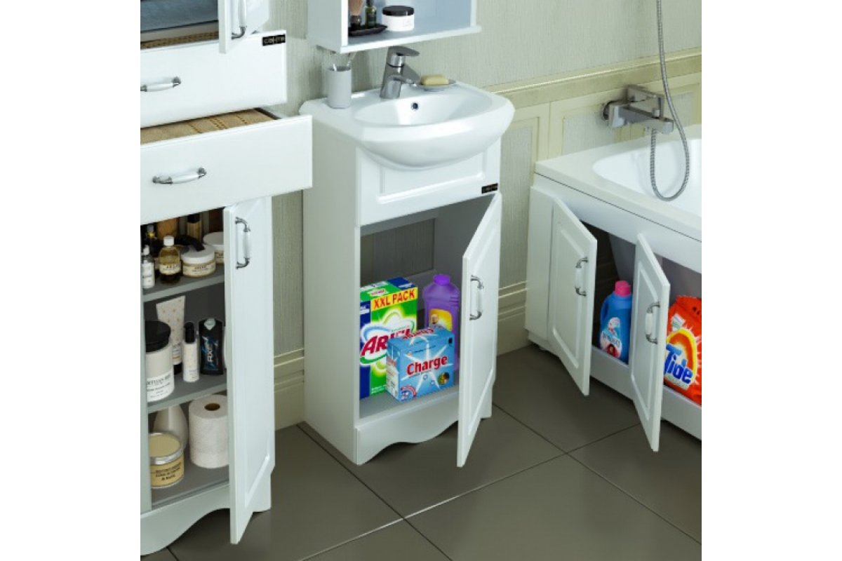 Комплектация товара: на дверке петли плавного закрывания - 1 шт., ручки - 1 шт, раковина Уют 45;