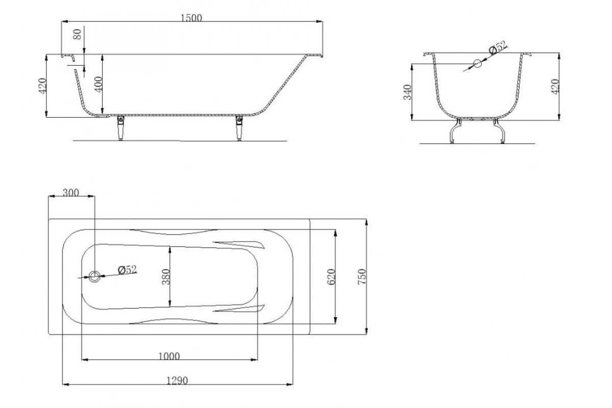 Ванна чугунная OWLIB191104 Бьёрн 1500*750 б/п, без ручек, ножки в комплекте