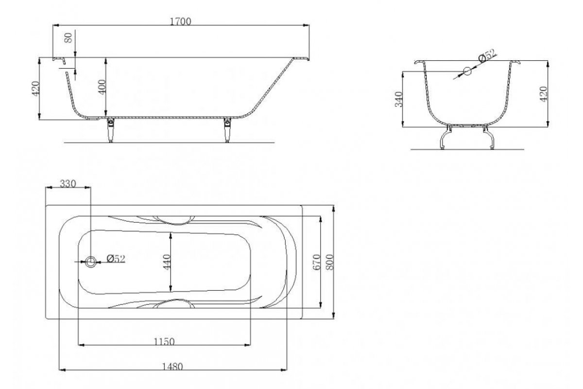 Ванна чугунная OWLIB191110 Странд 1700*800 б/п, с ручками, ножки в комплекте