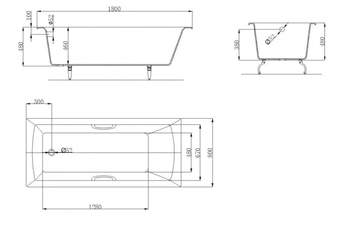 Ванна чугунная OWLIB191115 Конунг 1800*800 б/п, с ручками, ножки в комплекте
