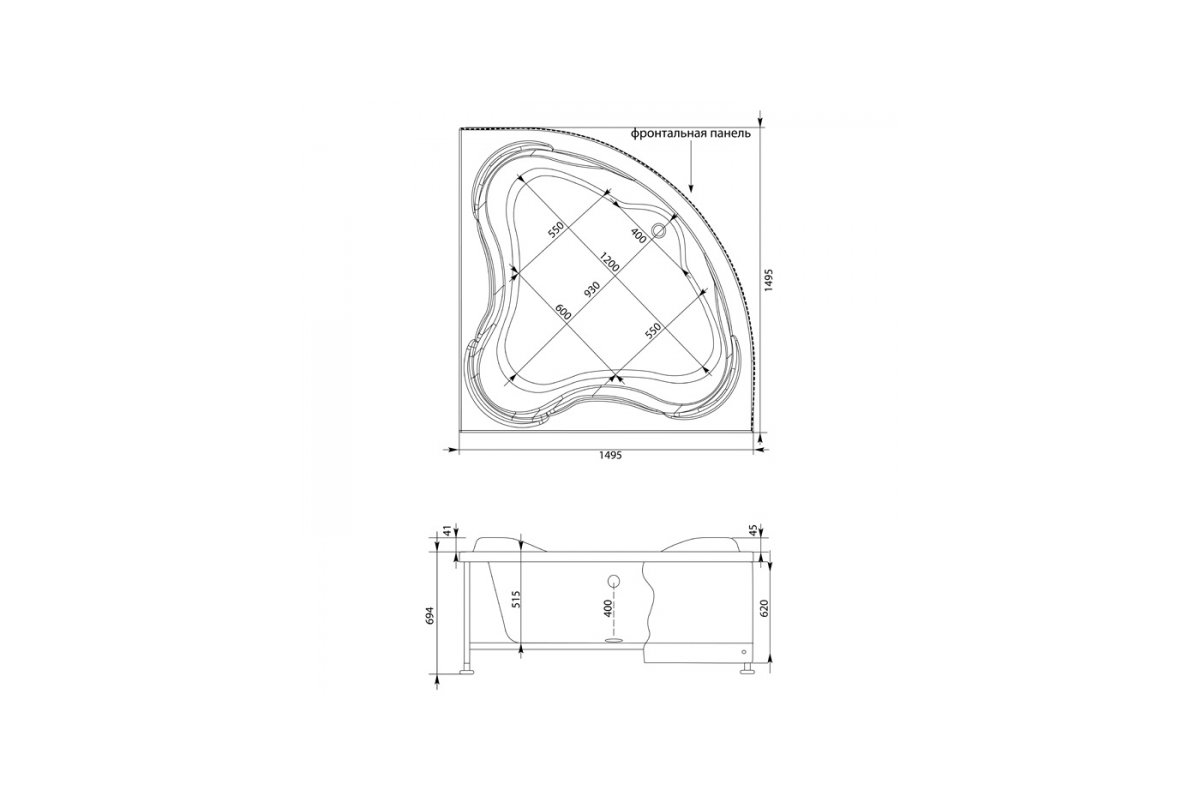 ВНИМАНИЕ! Фронтальная панель, каркас, а также слив-перелив в стоимость не входят и заказываются дополнительно. Гидромассаж, аэромассаж, хромотерапия – дополнительные опции, установка по желанию.