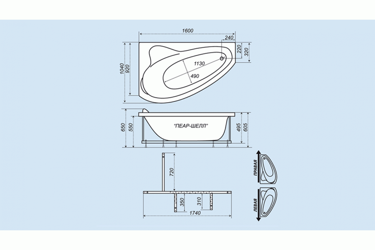 Акриловая ванна Triton асимметричная ПЕАРЛ-ШЕЛЛ L/R