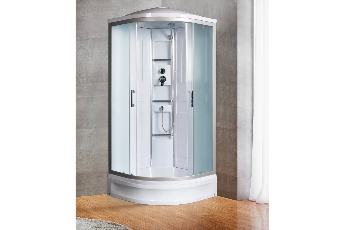 Безсиликоновая сборка!Без крыши, центральная стойка, ручной душ 3-х позиционный, держатель д..
