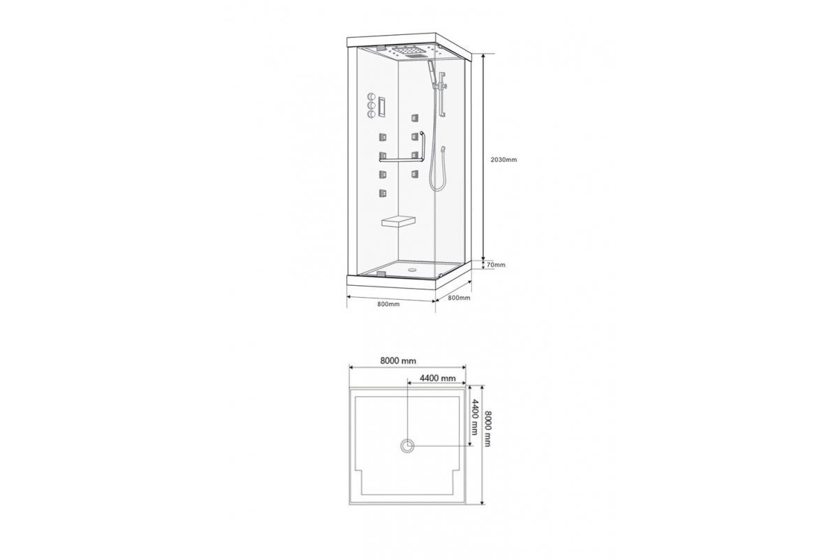 Безсиликоновая сборка!Без крыши, центральная стойка, ручной душ 3-х позиционный, держатель д..