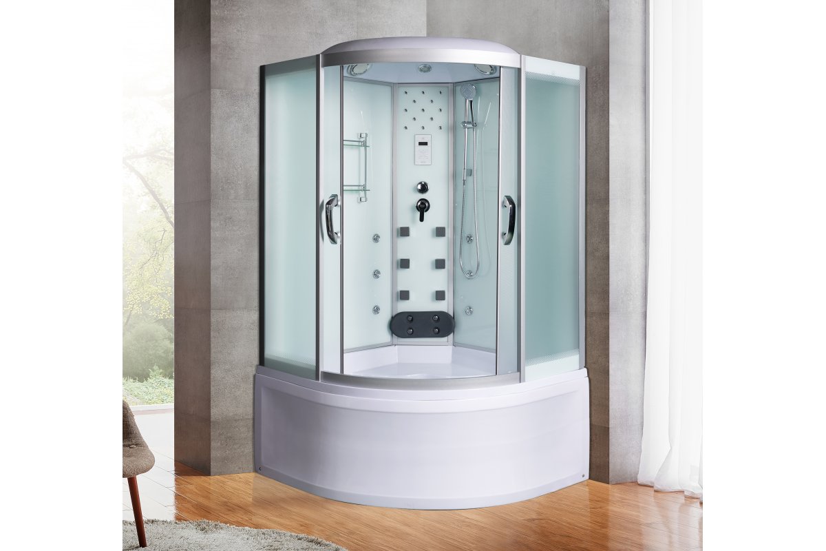 Безсиликоновая сборка!Без крыши, центральная стойка, ручной душ 3-х позиционный, держатель д..