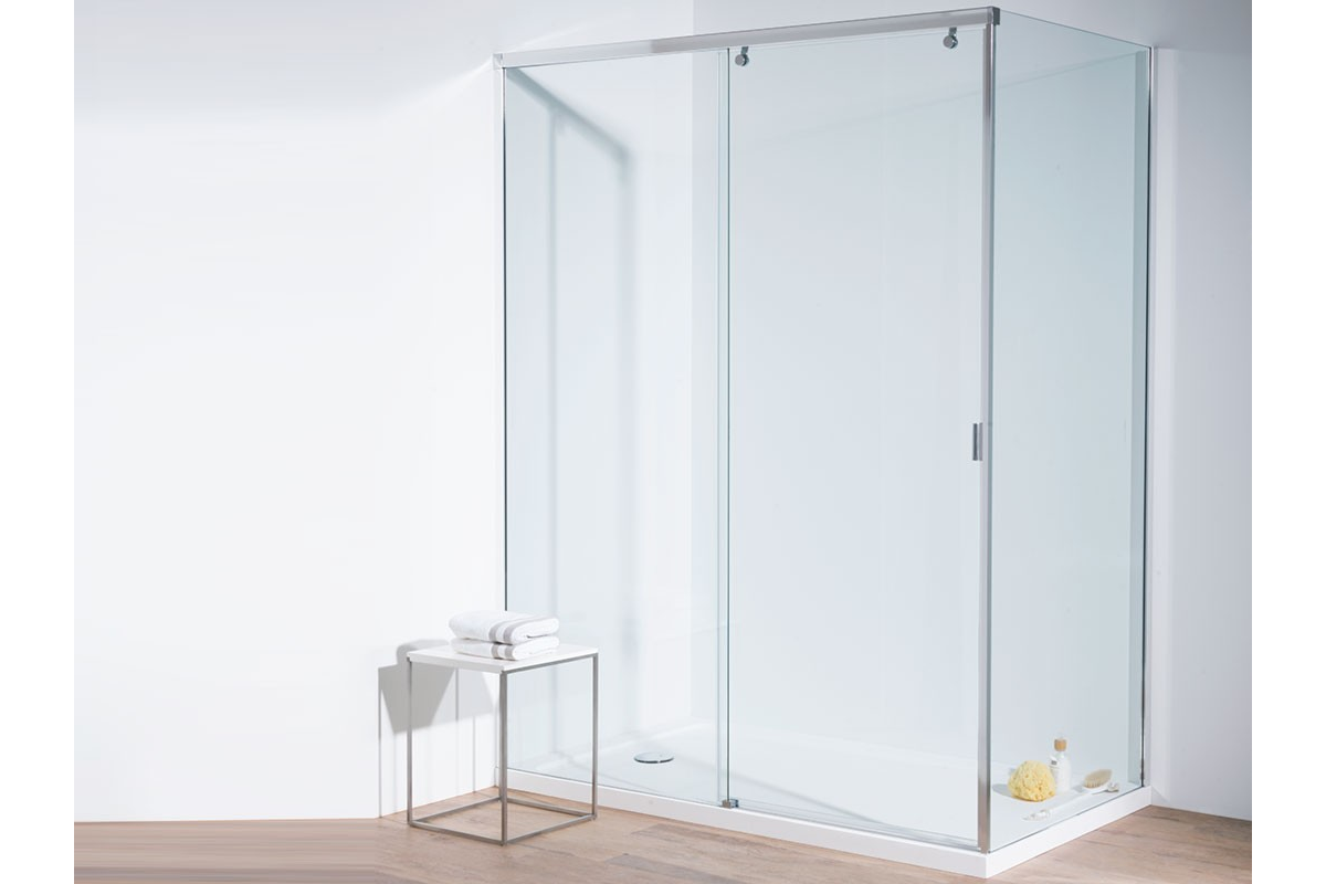 Тропический душ, ручной душ, зеркало, полочка. 4 мм, задняя стенка -белая, дверцы -..