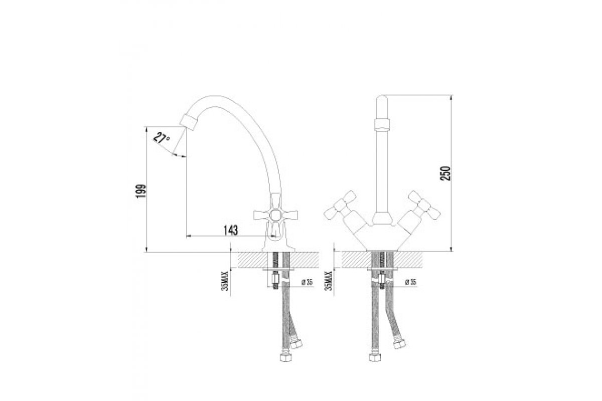 Смеситель LEMARK для кух.мойки "BENEFIT", 2-х вент., повор. изл. 250мм, хром