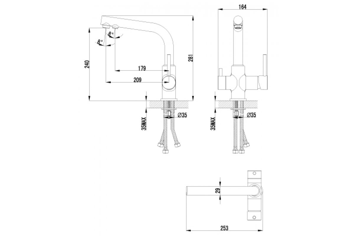 Для крана с питьевой водой: кран-букса с керамическими пластинами (угол поворота – 90 градусов)