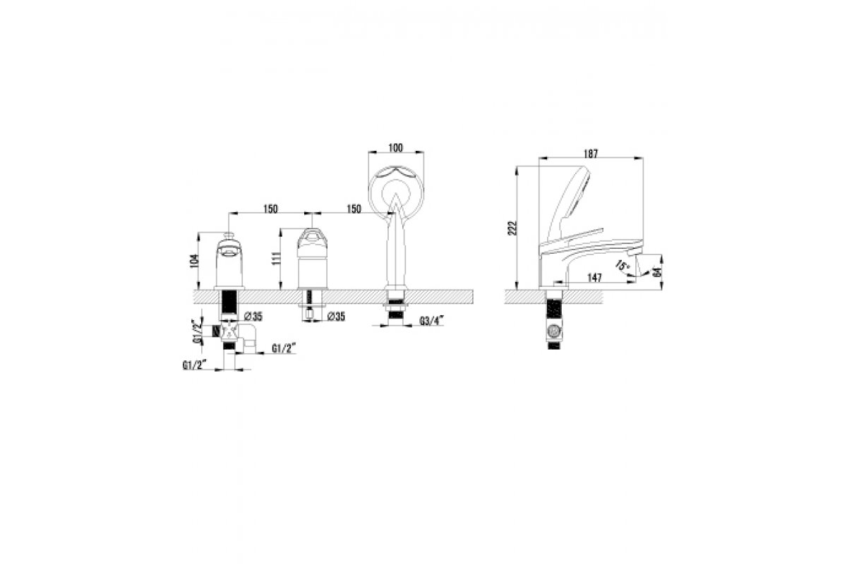 Смеситель LEMARK в/д "LUNA", встраиваемый, на 3 отверстия , хром (LM4145C)