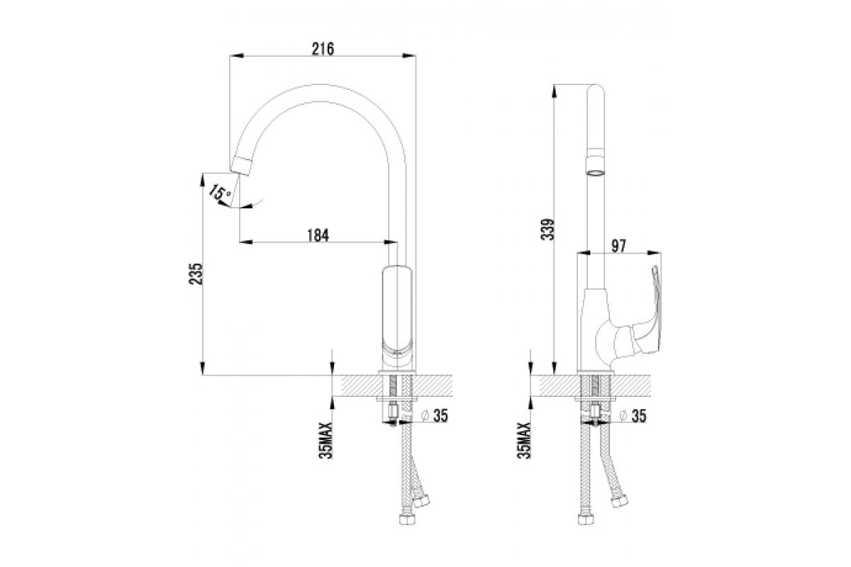 Смеситель LEMARK для кух. мойки "PLUS SHAPE", моно, высок. повор излив, хром