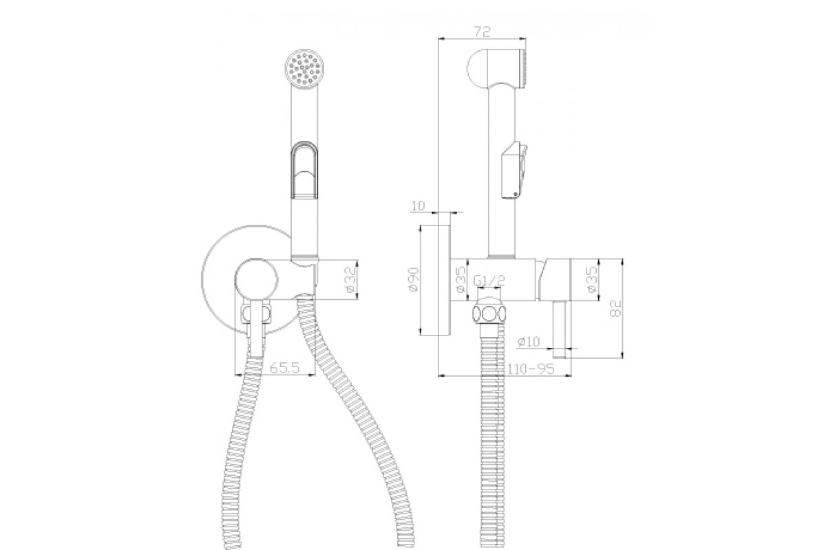 Аксессуары в комплекте (шланг 1,2 м, лейка для биде с нажимным механизмом)