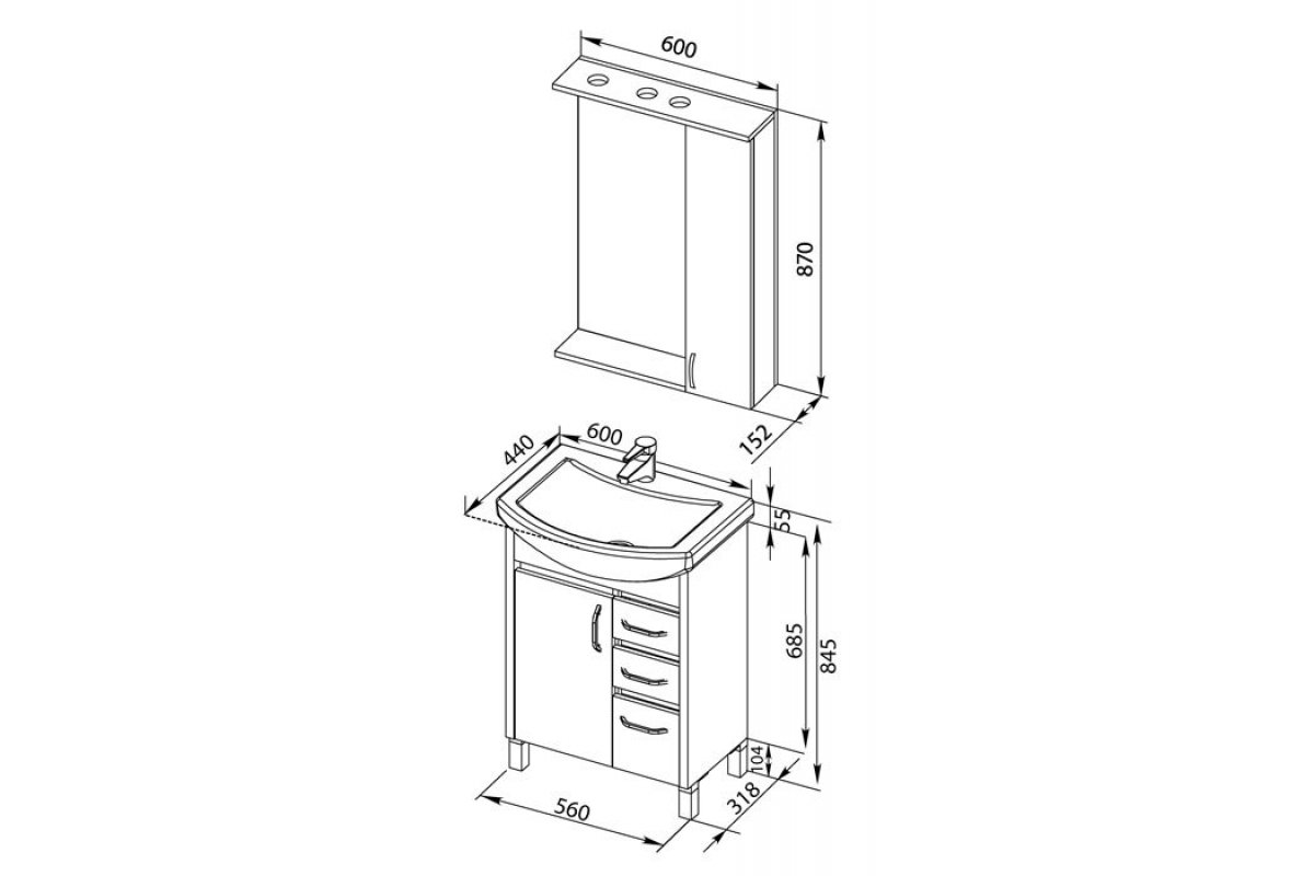 Тумба под раковину Aquanet Донна 60 (1 дверца, 3 ящика)