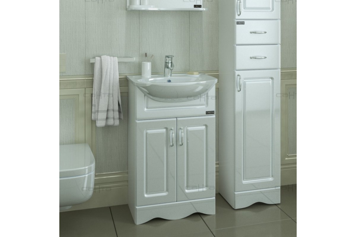 Комплектация товара: ручка хром/керамика белая 2, на дверках петли плавного закрывания, раковина Уют 50.