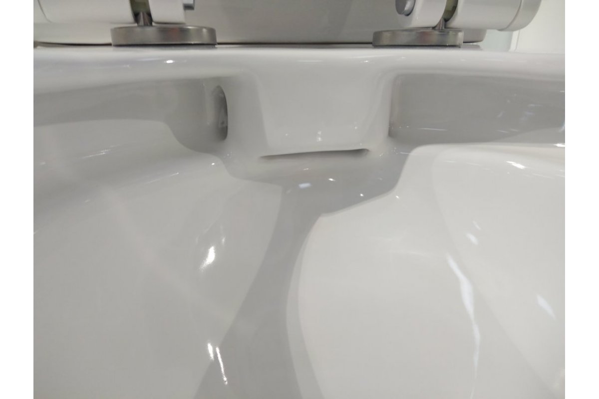 - Безободковая модель обеспечивает легкость и простоту уборки, а также отсутствие скапливания налета и грязи под ободком унитаза в отличии от классических моделей