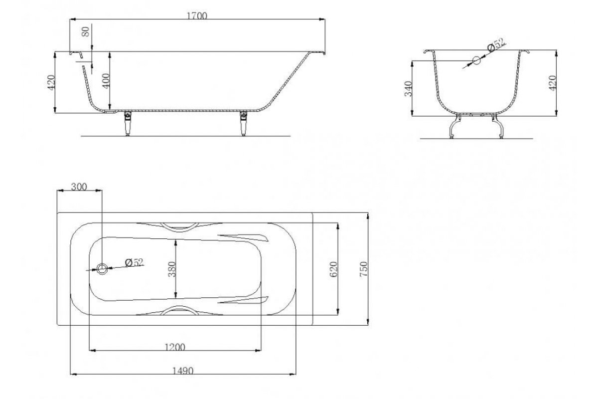 Ванна чугунная OWLIB191107 Бьёрн 1700*750 б/п, с ручками, ножки в комплекте