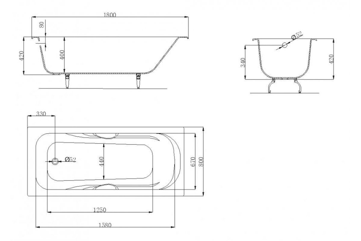 Ванна чугунная OWLIB191111 Странд 1800*800 б/п, с ручками, ножки в комплекте