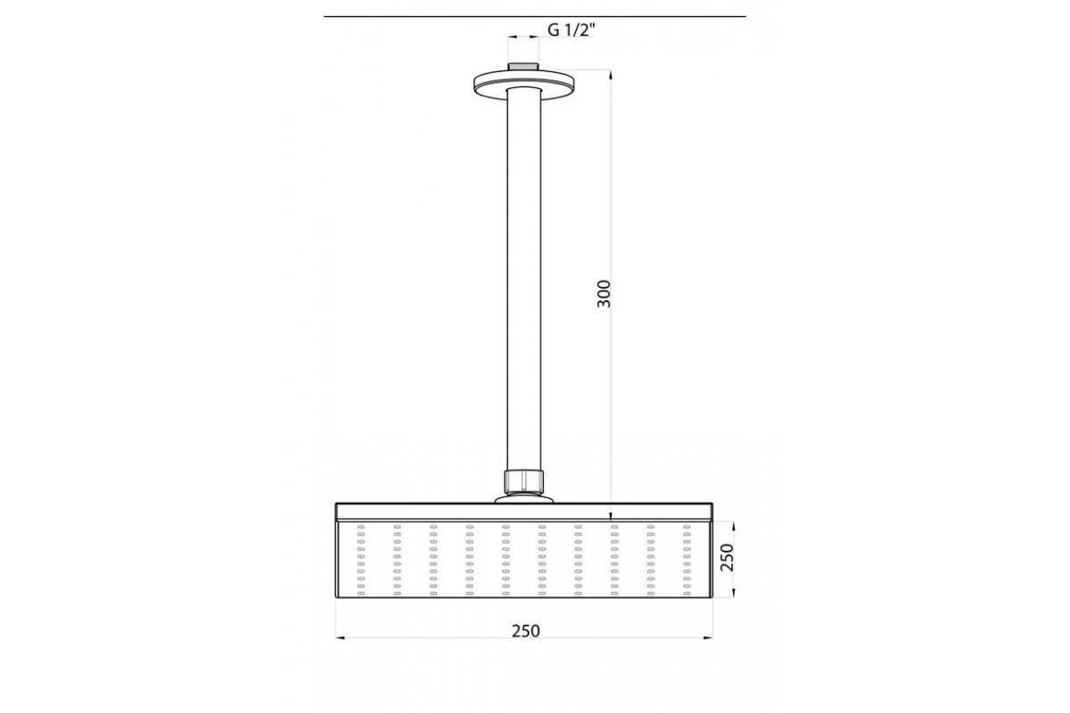 Потолочный душ 25х25 см. с жесткой подводкой.
